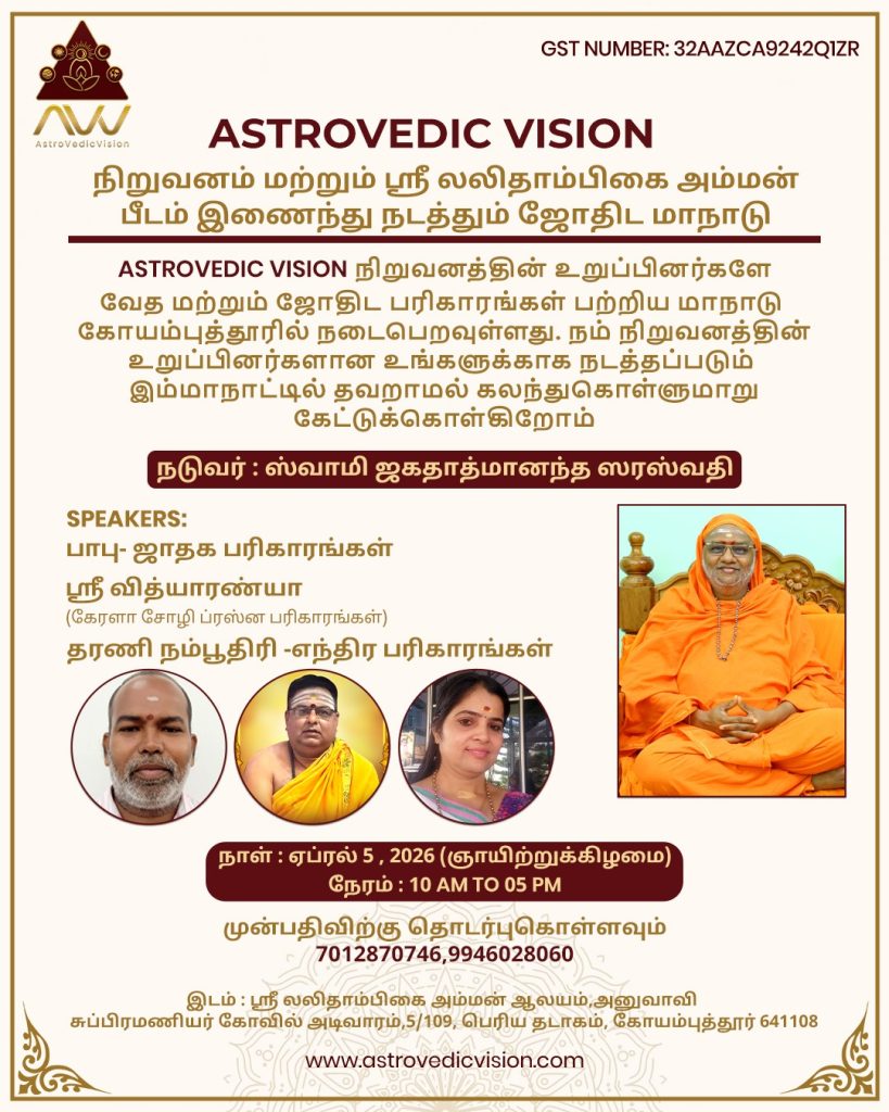 AstroVedic Vision சார்பில் இலவச ஜோதிட ஆலோசனை முகாம் நடைபெறுகிறது. அனுபவமுள்ள ஜோதிடர்கள் மூலம் ஜாதக பரிசீலனை, வாழ்க்கை தீர்வுகள் வழங்கப்படும்.